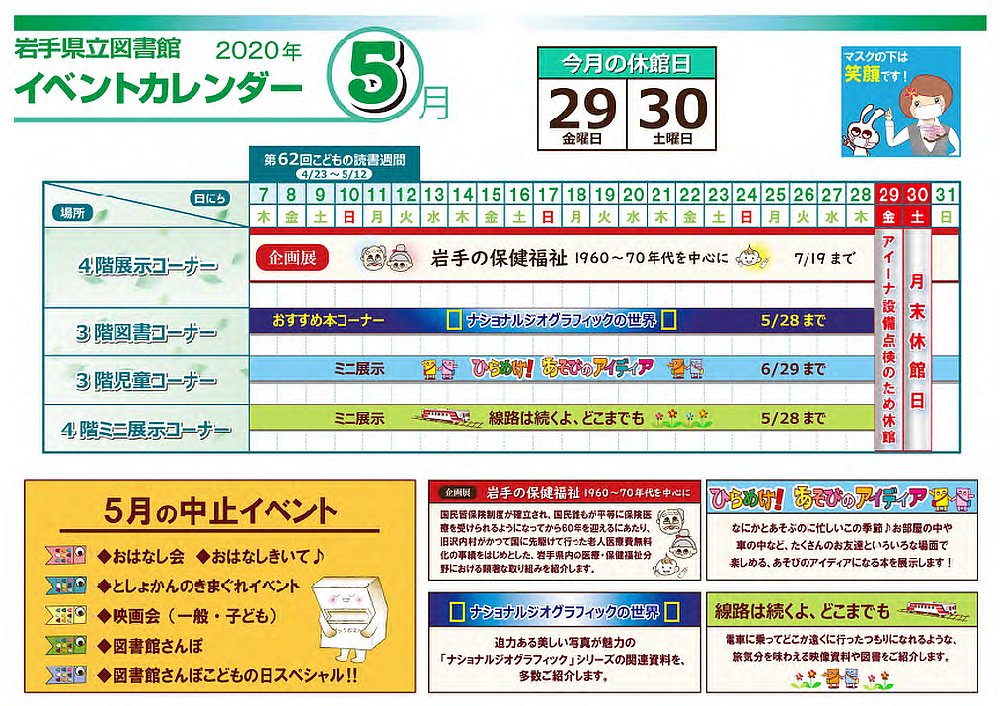 | 2日(土曜) | 新型コロナウイルス感染症拡大にともなう図書館サービスの制限について | ||