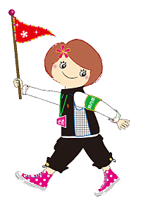 図書館の中にいる 「そめちゃん」を見つけて、 旗に書いてある文字を集めてならびかえてみよう!