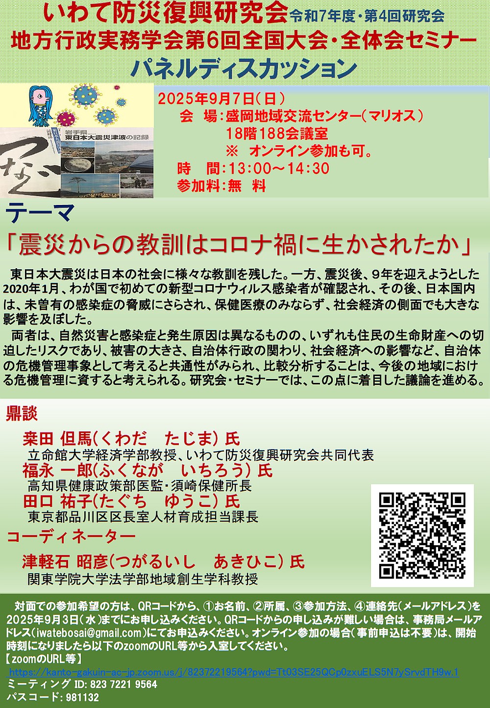 いわて防災復興研究会 令和7年度第4回研究会および地方行政実務学会第6回全国大会全体会セミナーが、開催されます。